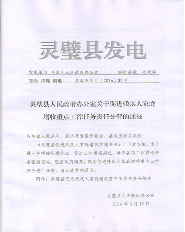 灵璧县人民政府办公室关于促进残疾人家庭增收重点工作任务分解的通知